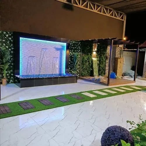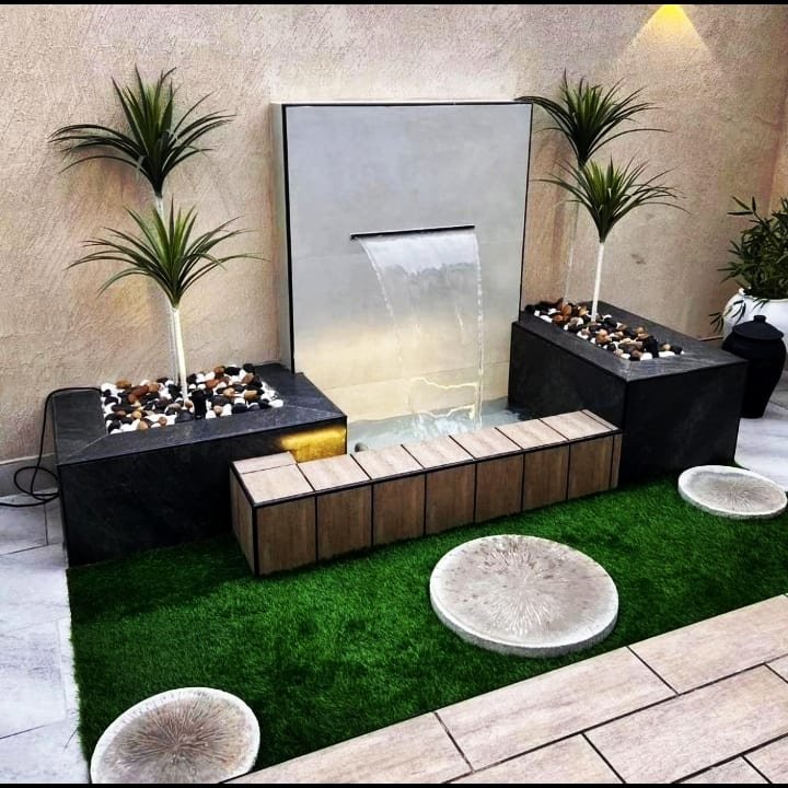 نحرص على دمج الشلال مع تنسيق الحديقة بشكل متناغم، مع إمكانية إضافة الإضاءة والمؤثرات الجمالية لخلق أجواء مريحة وجذابة. الشلالات المنزلية تضيف قيمة جمالية عالية وتحوّل المكان إلى مساحة استرخاء مميزة.